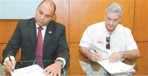 El ministro de Obras Públicas, Gonzalo Castillo, y el administrador general del Banco de Reservas, Enrique Ramírez Paniagua, firmaron el acuerdo de traspaso oficial de los peajes dominicanos a la empresa Fideicomiso RD Vial/Banreservas, que administrará los recursos generados por ocho puestos de cobro de tasas por uso de carreteras.